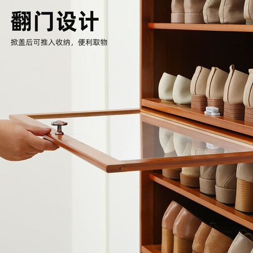人性化透明翻门设计,美观方便,防尘防潮,呵护鞋子。顶部大平台置物,加深宽度,便利置物,缔造整洁居家氛围。