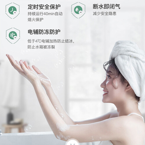 搭载智能控温检测功能,可实时检测水流和水温变化,并传递信号给中央控制器。加持自动调温系统,一键就能开启舒适浴。