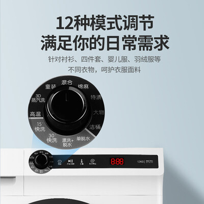 12种洗涤模式可选择,实现分类洗涤,洗衣更自由。中途添加衣物的功能,让洗衣更轻松,无需担心漏洗。