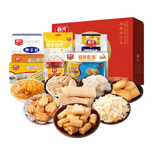 一盒中有八款不同的优质零食,都是具有海南风味的特色美味。使用红色的喜庆包装设计,简单不失大方,适合作为送给长辈的礼物。