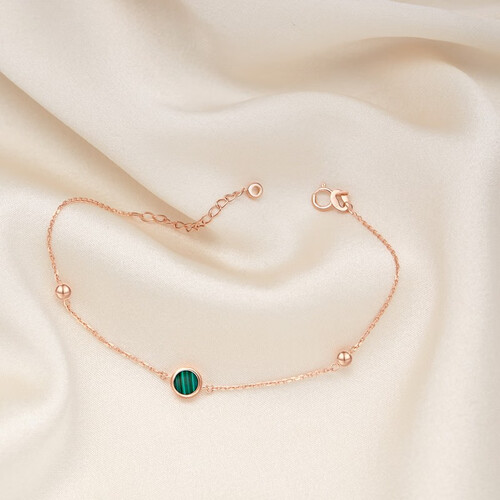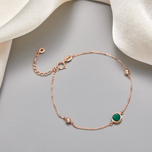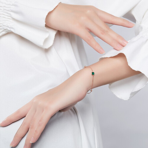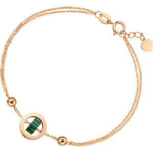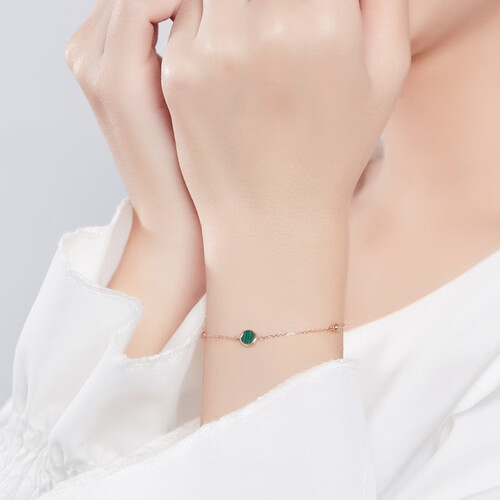 手链的中间配有一个孔雀石,结合上亮眼的色泽,戴在腕部可凸显出女性独特的气质。采用延长尾链设计,可随意调节长度。