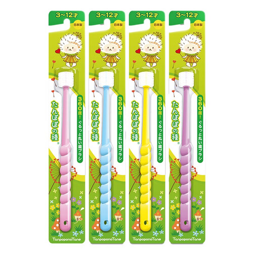 牙刷采用立体圆柱型设计,360度清洁死角,保护宝宝口腔健康。手柄采用聚丙烯制成,韧性十足,使用寿命更长久。