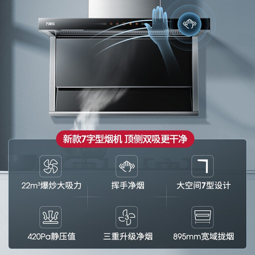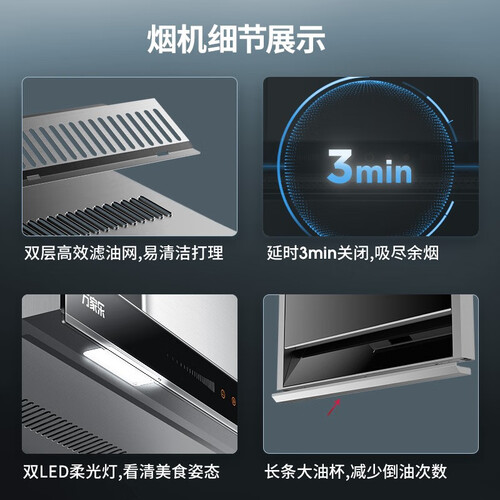 宽域拢烟设计,油烟不乱跑,厨房更洁净,可拆卸易洁炉头,洁净得心应手,享受美好时光。