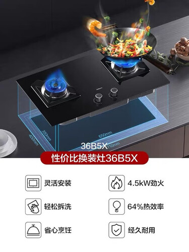 拥有4.5KW强劲大火力,充足火力助你烹饪出别样的佳肴,吃起来更有滋味。自适应底盘,轻松换装不受限,快捷方便。