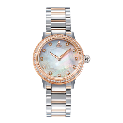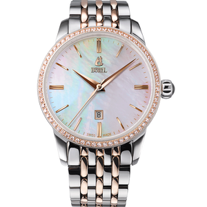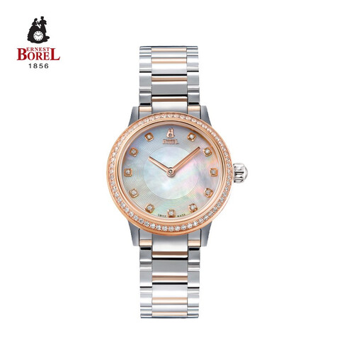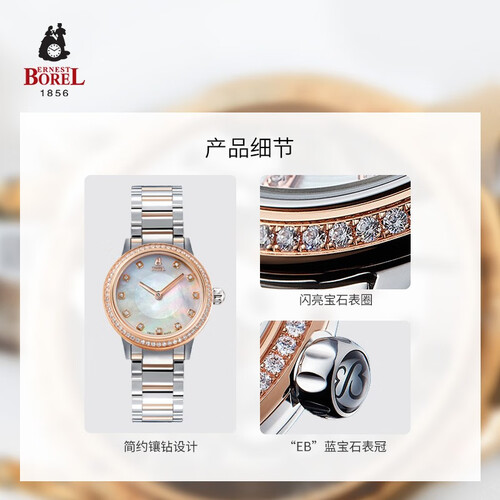 贝母表面镶嵌11粒钻石,闪耀夺目,知性优雅,充分展示女性气质,纤薄表壳设计,质感不凡,佩戴舒适,轻柔更迎合女性优雅。