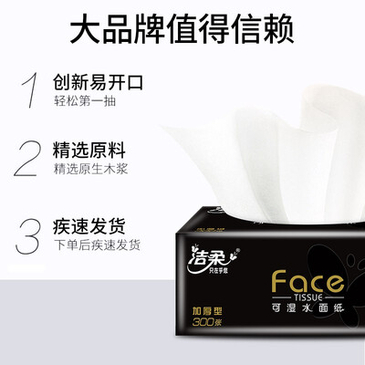 湿水不宜烂,可作洗脸巾。厚实三层,针织一抽抵两抽。创新开口,一次一张,抽取不重复,不易浪费。