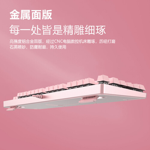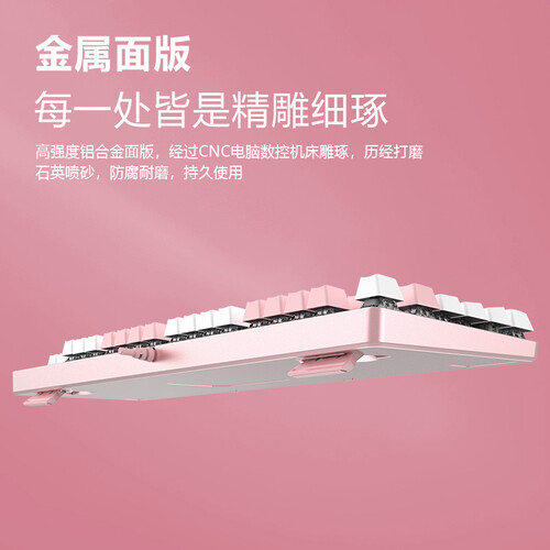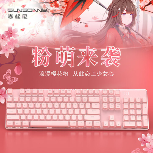 采用优质机械红轴,敲击的手感清脆,使用寿命长久。浪漫樱花粉配色,清新又可爱,稳坐桌面颜值C位。