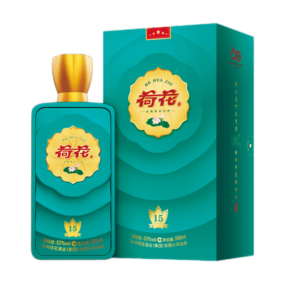 经典荷叶纹理,配以金色LOGO,典雅大气;经九蒸八酵七取酒的酿造工艺,入口甘甜爽口,饮后留香。