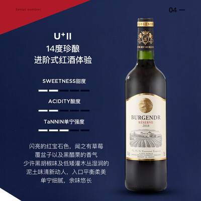 酒帽上的金色纹饰尽显简约大气之风,与整体的瓶身很搭调。选用老藤葡萄制作而成,口感特别,层次多样。