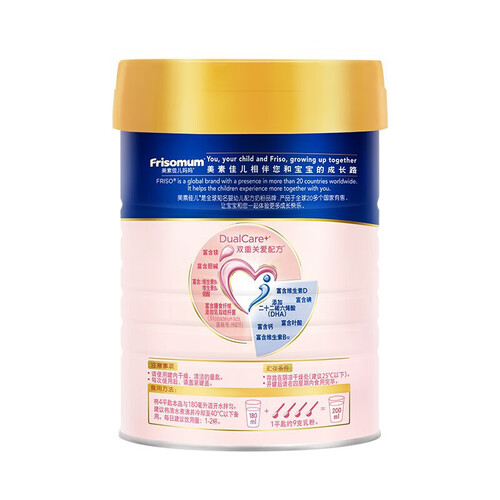 采用DHA微胶囊技术,使其口感不腥不腻,妈妈更易接受。奶粉可搭配不同的蔬菜、水果、谷物一起冲调,解锁多样美味。