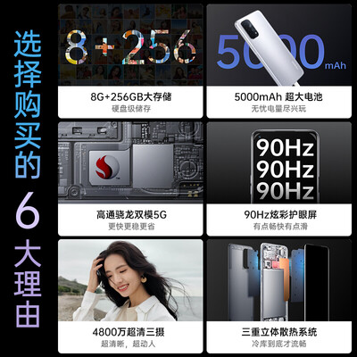 搭载八核芯片,双模5G网络加持,游戏全速出击。5000mAh大电池,重度用户也只需一天一充。