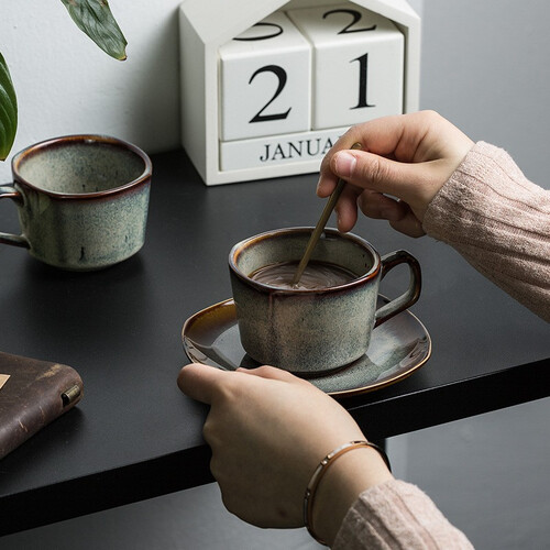 青木尚瓷 复古冰裂咖啡杯