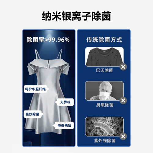 内设纳米银离子除菌技术,可以有效洁净衣物上的细菌,除渍效果好,洗衣更健康。还拥有60°C除螨洗功能能,除螨更护健康。