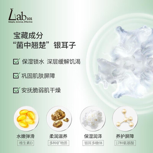 添加了银耳子提取物,质地非常盈润,能够修护肌肤受损角质层,更加饱满弹润,同时含有玻尿酸,长效锁水保湿。
