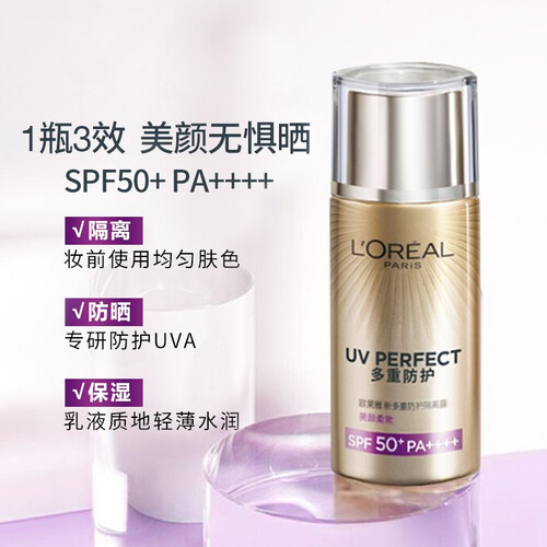 轻盈乳液质地,迅即渗透,专研防晒科技,可有效防止肌肤被晒黑,晒伤。