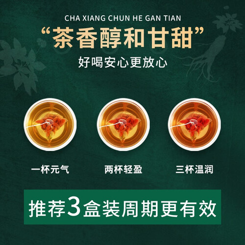 精选三味传统养生食材,科学配比,营养易吸收,温和不刺激。透明茶包,原料清晰可见,品质有保障。