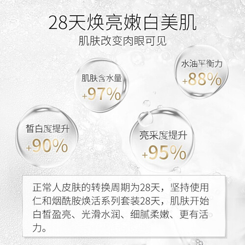 这款套装通过木糖醇为肌肤补充水分,告别干燥与粗糙,肌肤水嫩更细嫩。坚持使用28天,亮肤效果肉眼可见,肤色白嫩气色好。