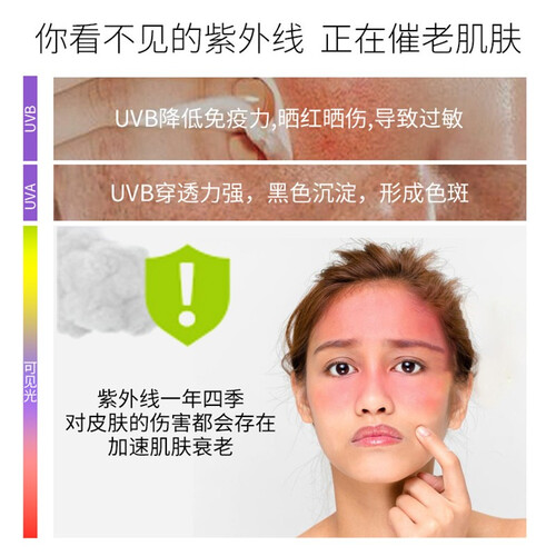 清爽不粘腻质地,蕴含持久防护、保湿成分,细腻的喷雾紧密附着在肌肤上形成防护膜,防晒的同时修护日常环境造成的干燥、粗糙感。