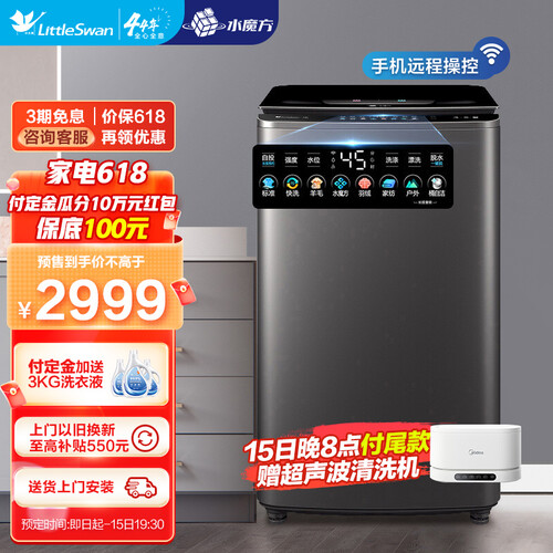 立方无孔内桶,洗涤时降低衣物的磨损,隔绝脏污。支持连接手机WiFi,不在家也可查看洗衣进程。