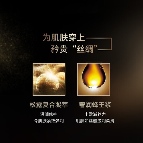 奢润蜂王浆成分,令肌肤宛如丝绸般柔滑。内含松露复合凝萃等成分,为肌肤带来深润修护,令肌肤保持紧致弹润状态。