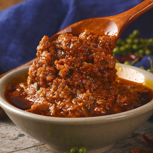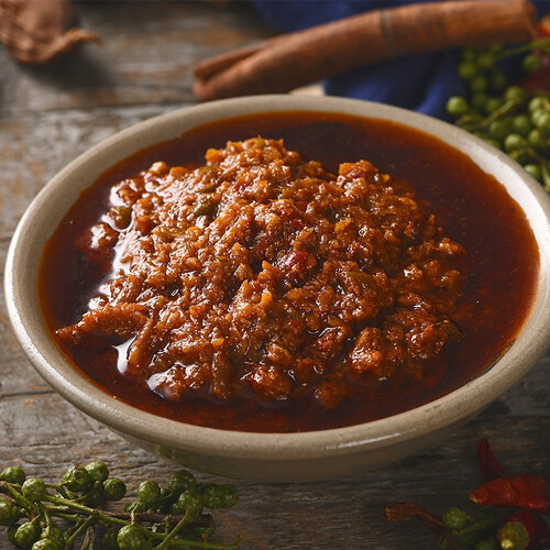 色香味俱全的地道四川火锅底料,采用鸡油、猪油、牛油混合炒制,醇香而不油腻,优选上好的花椒,色泽正颗粒大,麻味十足。