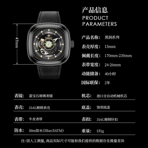 拥有多层动态表盘,能够满足你的机械乐趣,给人不一样的视觉冲击享受。搭配蓝宝石玻璃镜面,更加有光泽。