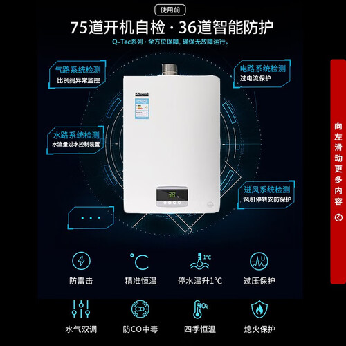 采用变频模式,支持无缝燃烧切换,均匀出水,实现恒温效果。采用节能设计,有效延长热水器寿命,使用时更安心。