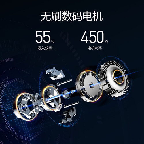 160AW大吸力,快速吸除地面的尘屑,洁净地面更快速。拥有65分钟的长续航能力,大面积地面清洁轻松搞定,不用频繁充电。