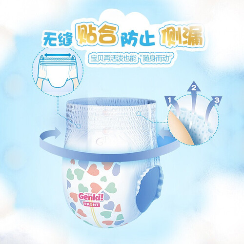采用丝滑立体护围设计,无惧摩擦让宝宝尽情翻滚玩耍。兼顾吸收性、舒适度和透气性,给宝宝带来更舒适的穿着体验。