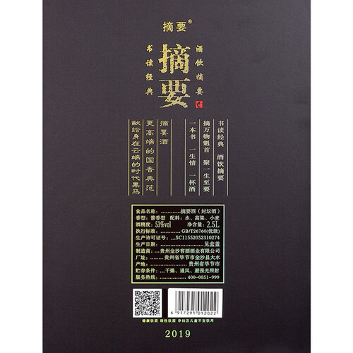 萃取富含矿物质的赤水河水,并以优质高粱、小麦进行发酵,浓郁醇香的口感经久爱喝。2.5L的大容量,商务场合宴请畅饮更开怀。
