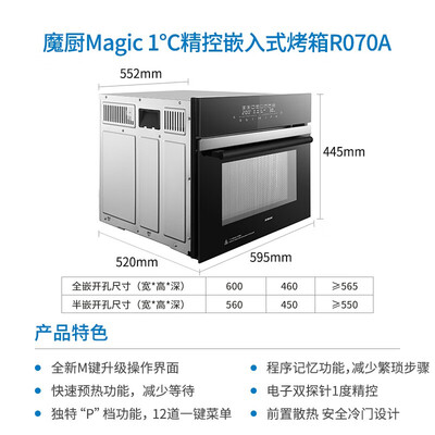 可以快速预热,缩短烘焙等待时间,美味先享一步。双温度探测针配合微电脑,控温精准,食物味道更地道。