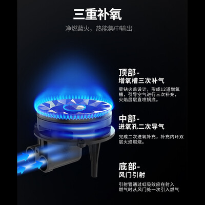 排烟时声音低至40dB,能让你静享安静烹饪时光。三重补氧设计,能保证灶具稳定燃烧,提高燃气利用率,使用更节能。