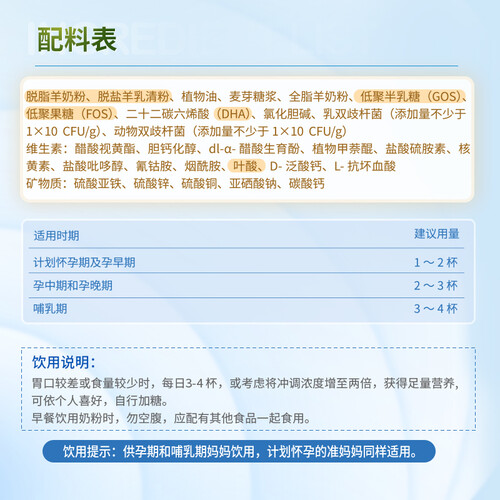 甄选荷兰优质奶源,奶源天然无污染,营养含量丰富,孕期及哺乳期妈妈都可以放心喝。富含钙、铁、锌,助力宝宝骨骼和牙齿发育。