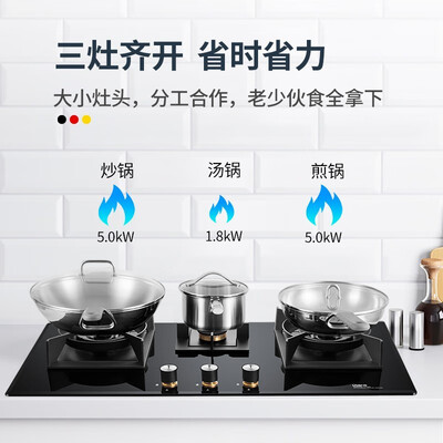 采用进口肖特玻璃面板,耐热性强,清理较简单,安全性高,经久耐用。5.0kw猛火加热,符合中式烹饪对火焰的要求。
