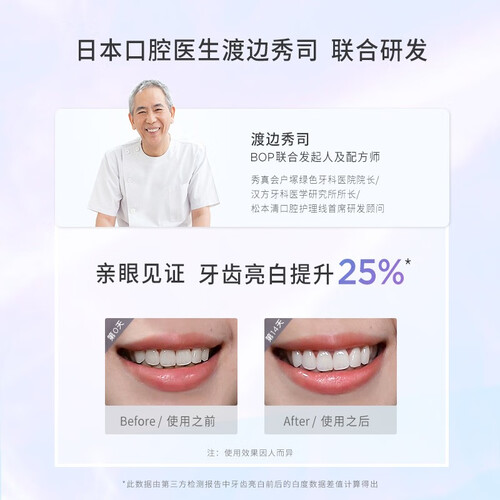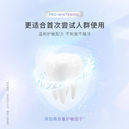 采用高活性的亮白酵素配方,能够轻松分解牢固牙渍,结合护敏因子与无水高粘性的设计,轻松起到三重焕白的效果。