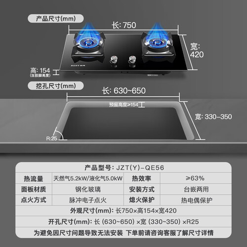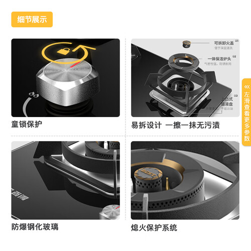 具备熄火保护功能,意外熄火时会自动切断燃气,安全无忧。3D富氧系统,燃烧充分。