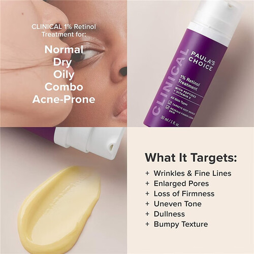 轻薄的乳液质地,具备强力渗透能力,深入呵护肌底,养护由内而外。高强度1%视黄醇浓度,可修复受损肌肤,呈现润泽活力肤质。