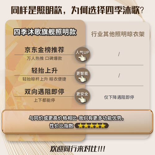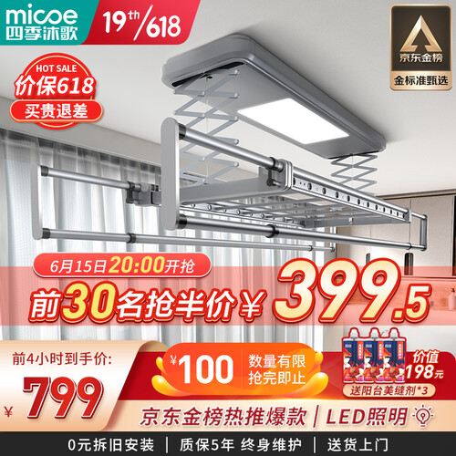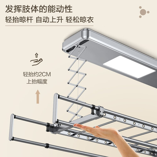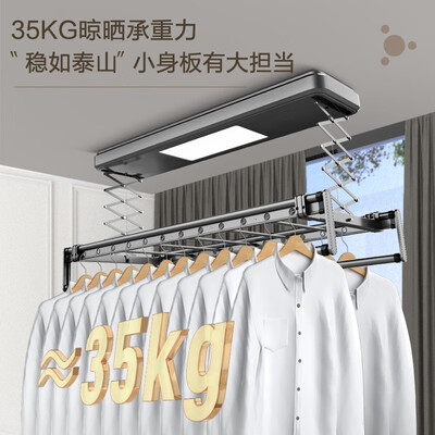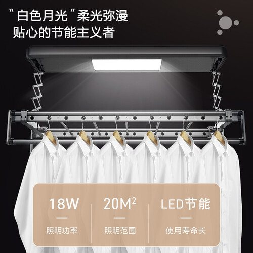拥有人体感应照明功能,暗光环境下晾晒衣服更方便。可称重35KG,厚实被子也可以放心晾晒。支持LED紫外线除菌,让穿衣更健康。
