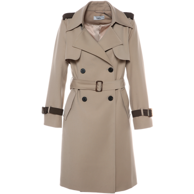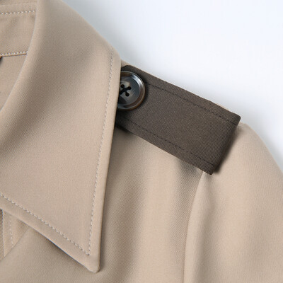 采用翻领设计展现优雅气质,大衣正面增加双排扣让造型整体更美观,两侧均有大口袋不但提升风衣层次感还实用。