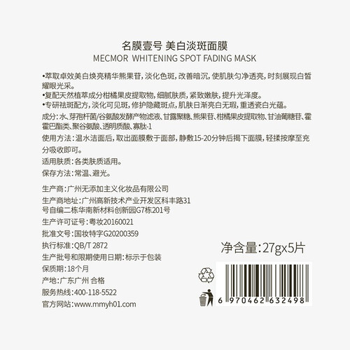 不添加防腐剂、铅和汞等成分,性质温和无刺激,孕妇和敏感肤质都可放心使用。选用MECMOR专研配方,有效改善肤质。