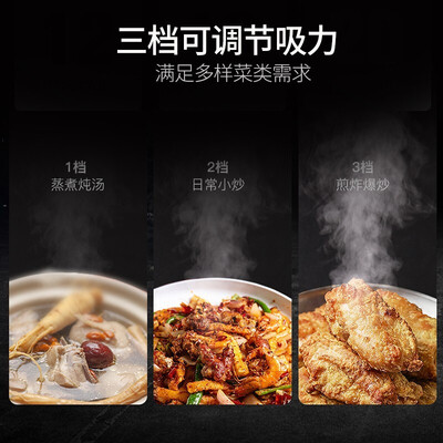 隔空挥手操作,解放双手,没有油腻感。3挡吸力,满足不同的烹饪需求,快速吸净油烟,控烟不跑烟。