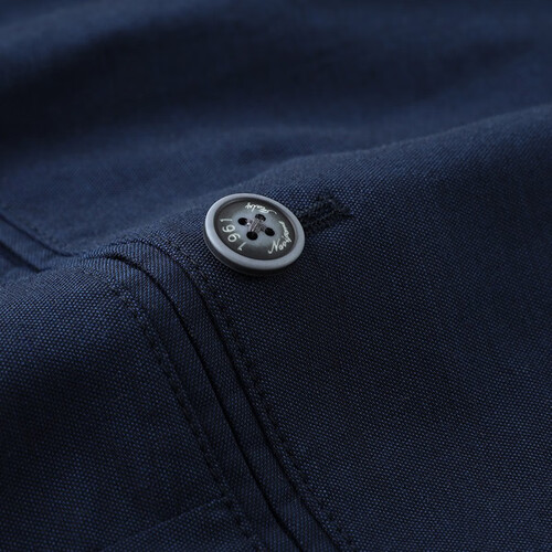 棉质混纺面料,氨纶增加弹性,上身舒适挺括,吸湿透气的同时兼具垂顺感,YKK顺滑质感拉链,品牌定制复古纽扣,提升整体质感。