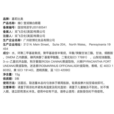 北美加州的护肤配方,带来丰富的维生素C精华,帮助赶走眼部的暗沉。还蕴含了烟酰胺成分,助力隔绝UVA。