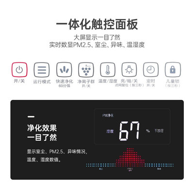 这款空气净化器外观线条流畅,配色简洁大气,一体曲面触屏设计操作清晰方便,还有一件除菌净化功能,洁净空气省心快捷。