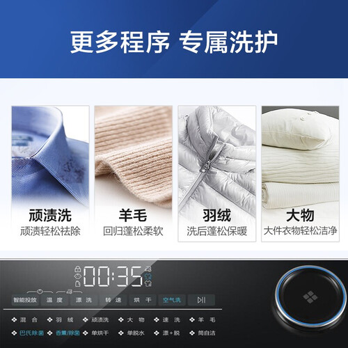 这款洗衣机加入童锁键设计,可防止小孩误操作,使用更放心。并采用大视窗设计,拿取衣物更方便。