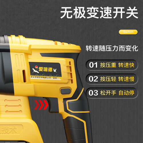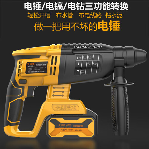 选用全铜无刷电机,升级加强气缸,大功率作业更加给力。锤钻镐三效合一的电动工具,一次满足多种需求。