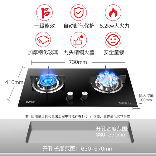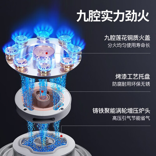 选用九腔莲花铜质火盖,成就高效大火力,且更加结实。搭载童锁按钮,时刻保障家人安全,更舒心。