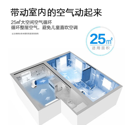 可带动25平米大空间空气循环,使室内的空气动起来,避免儿童直吹空调。远程遥控,懒人挚爱,手指一动,送来凉爽自然风。