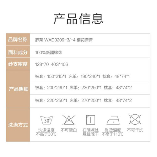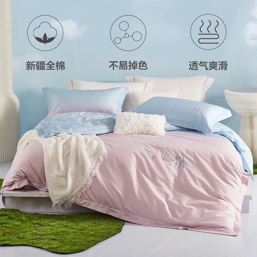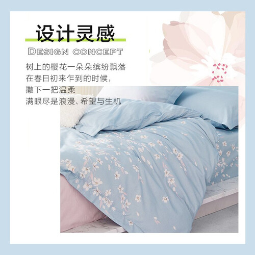采用健康环保活性印染原料,色泽更亮丽,洗后也不易褪色,搭配精美樱花,令卧室焕然一新,温馨舒适。