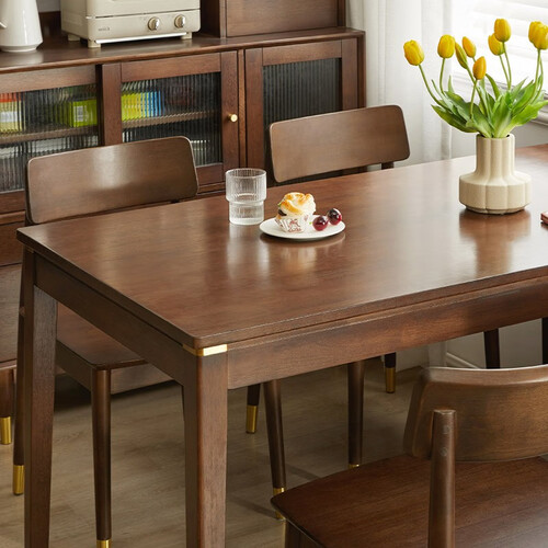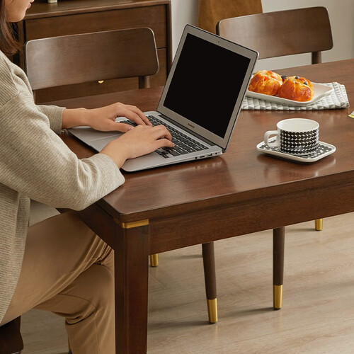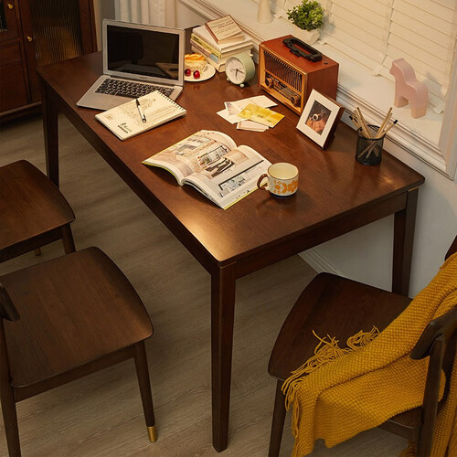整桌实木打造,质感十足为家居生活加分。自然的纹理和木色,搭配流畅简单的线条,颇有一种极简的美,适合多种居家环境。